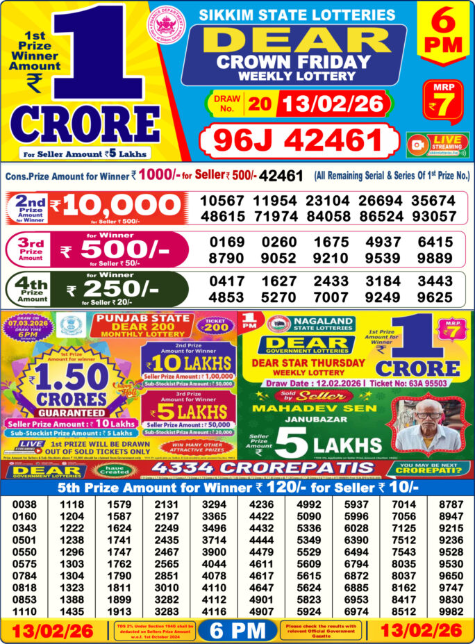 0 Comment on Dhankesari Result Today 8 PM Lottery Sambad 13/02/26