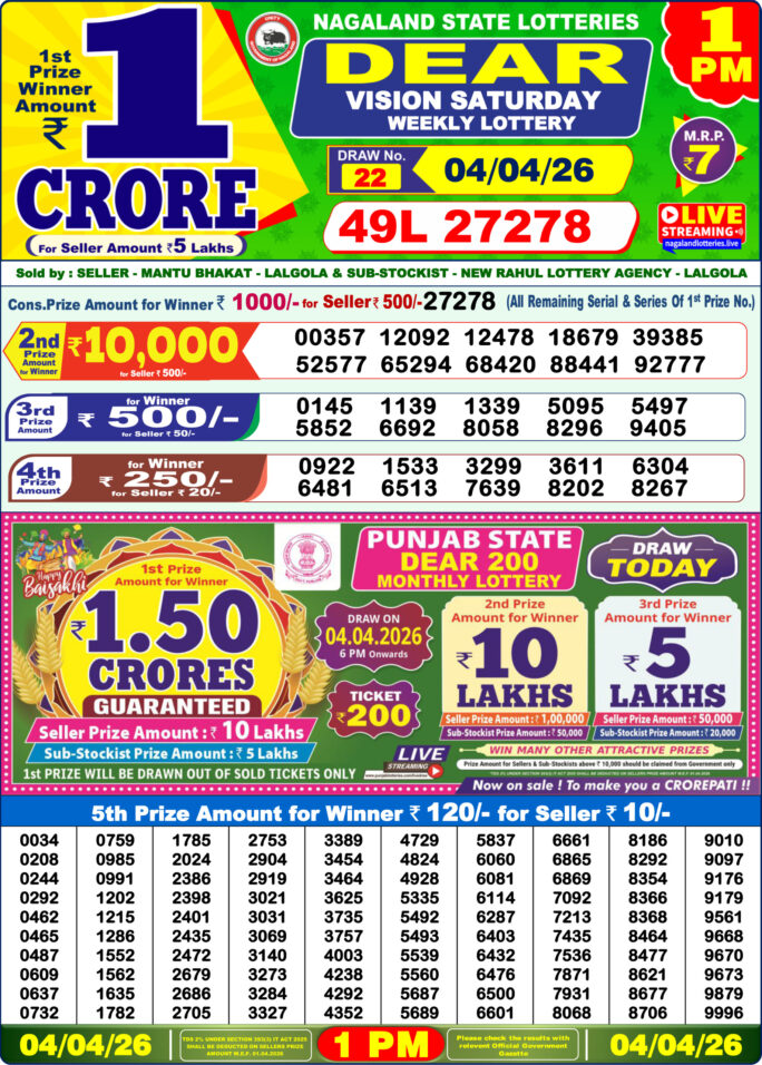 0 Comment on Dhankesari Result Today 1 PM Lottery Sambad 13/04/26