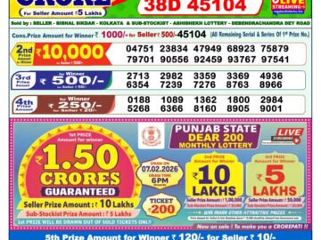 Draw is Nagaland State Dear Wish Weekly Lottery 01/02/26.