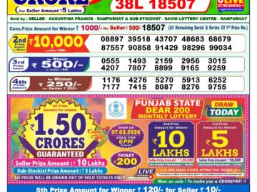 Draw is Nagaland State Dear Wish Weekly Lottery 01/03/26.