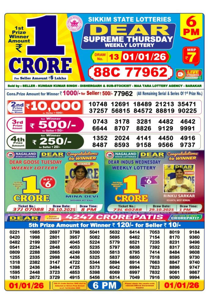 0 Comment on Dhankesari Result Today 8 PM Lottery Sambad 01/01/26